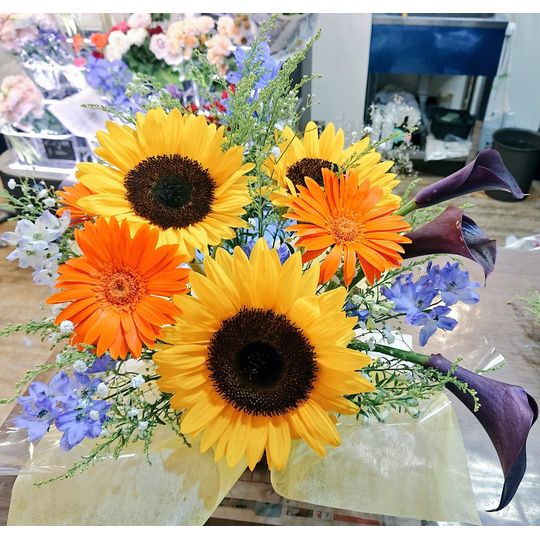気軽にお立ち寄りいただいたお客様にもお喜びいただけますよう、素早く丁寧に切り花などをご用意いたします。華やかなアレンジメントや可愛らしいハーバリウムのオーダーも承っており、オーダー品はご希望の色や大きさなどを伺ってから心を込めて作成しております。 -
